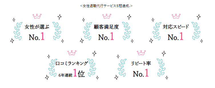 「男性には相談しづらい悩みも安心して話せた」との声が多く、実際に女性が選ぶ退職代行サービスNO.1を獲得しています。