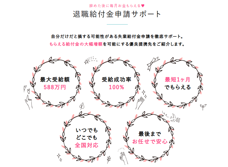 女性スタッフによる丁寧な対応がデリケートな相談でも打ち明けやすい環境を作り、精神的負担を抑えた退職が実現しやすいです。