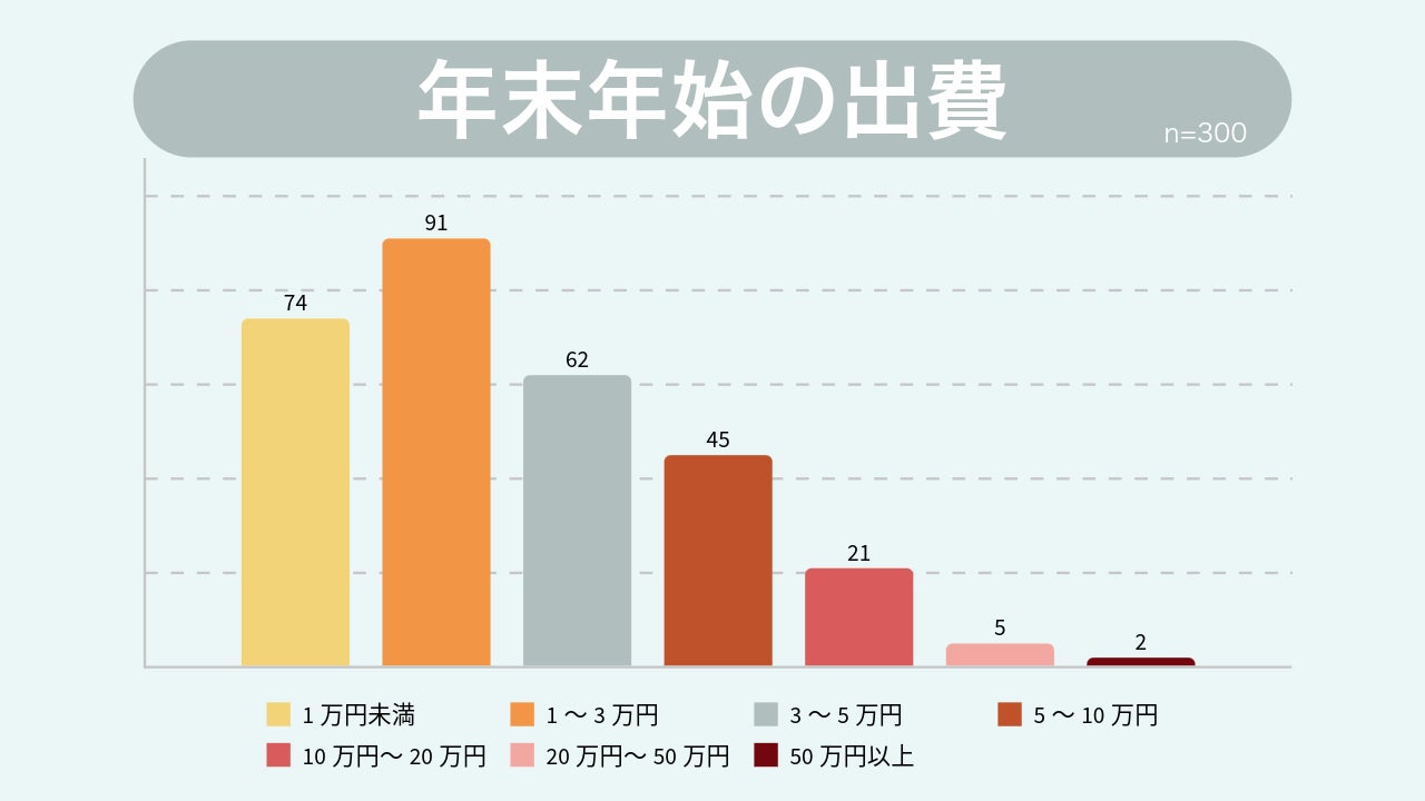 - 年末年始の支出総額は「1~3万円」が最多(約30.3%)