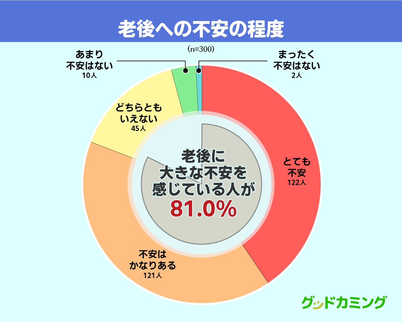 今回300人に対して行なったアンケートでは、81.0%の回答者が老後の生活に不安を感じていました。