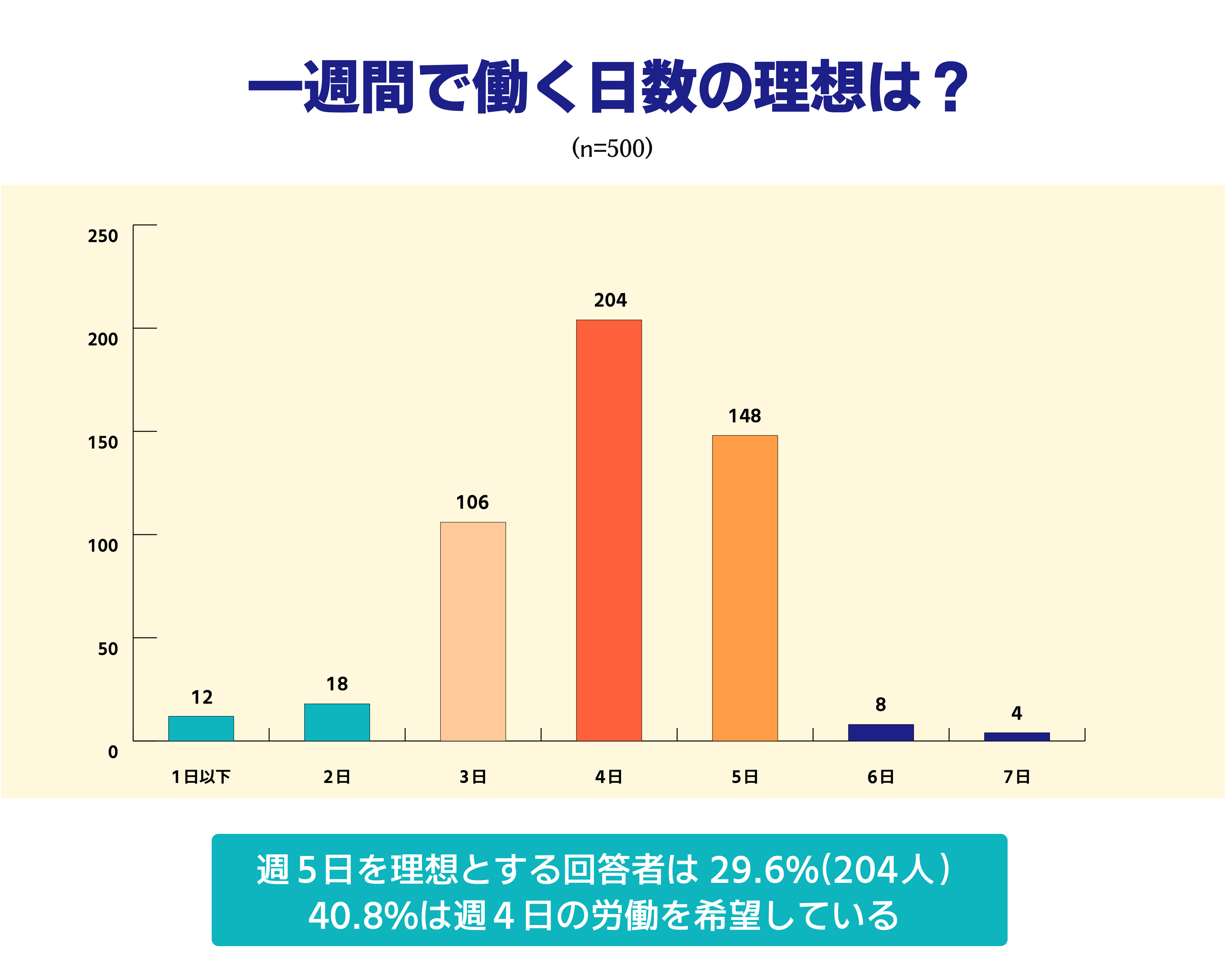 - 理想的な労働日数として最多の回答を得たのは「週4日」(40.8%)