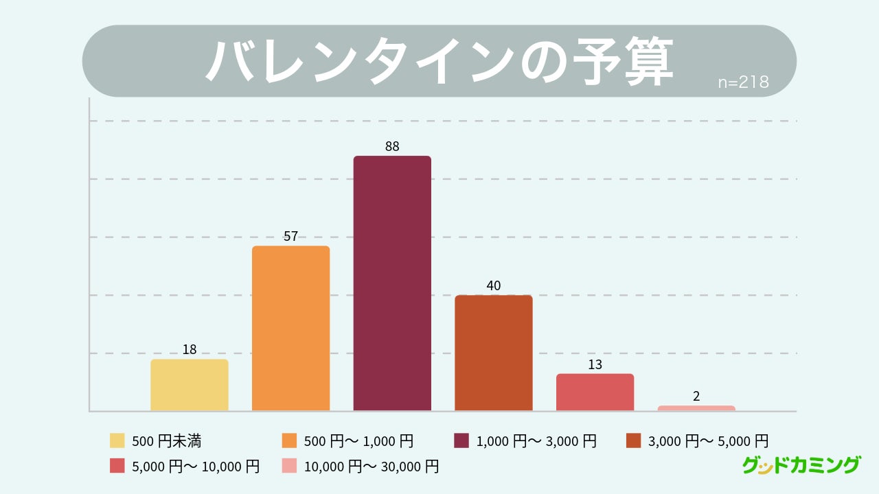 バレンタインにチョコレートを購入予定の218人に対し、予算について尋ねました。