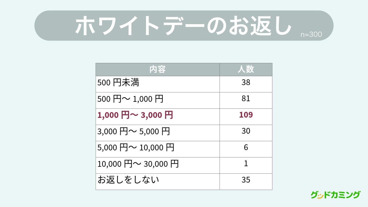 ホワイトデーのお返し予算も「1,000円~3,000円」が多数